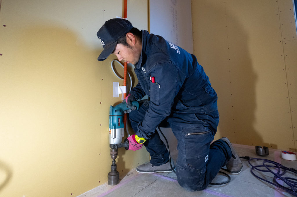 床下の潜りやすさ、数十年後のメンテナンスも考えてやりやすく最適な素材、寸法や角度を考えていかに見栄えもよく、効率よく設置できるか工夫しながら作業しています。完成品に近づけるという意味でオリジナルのプラモデルを、こだわりながら組んでるような感覚ではありますね。