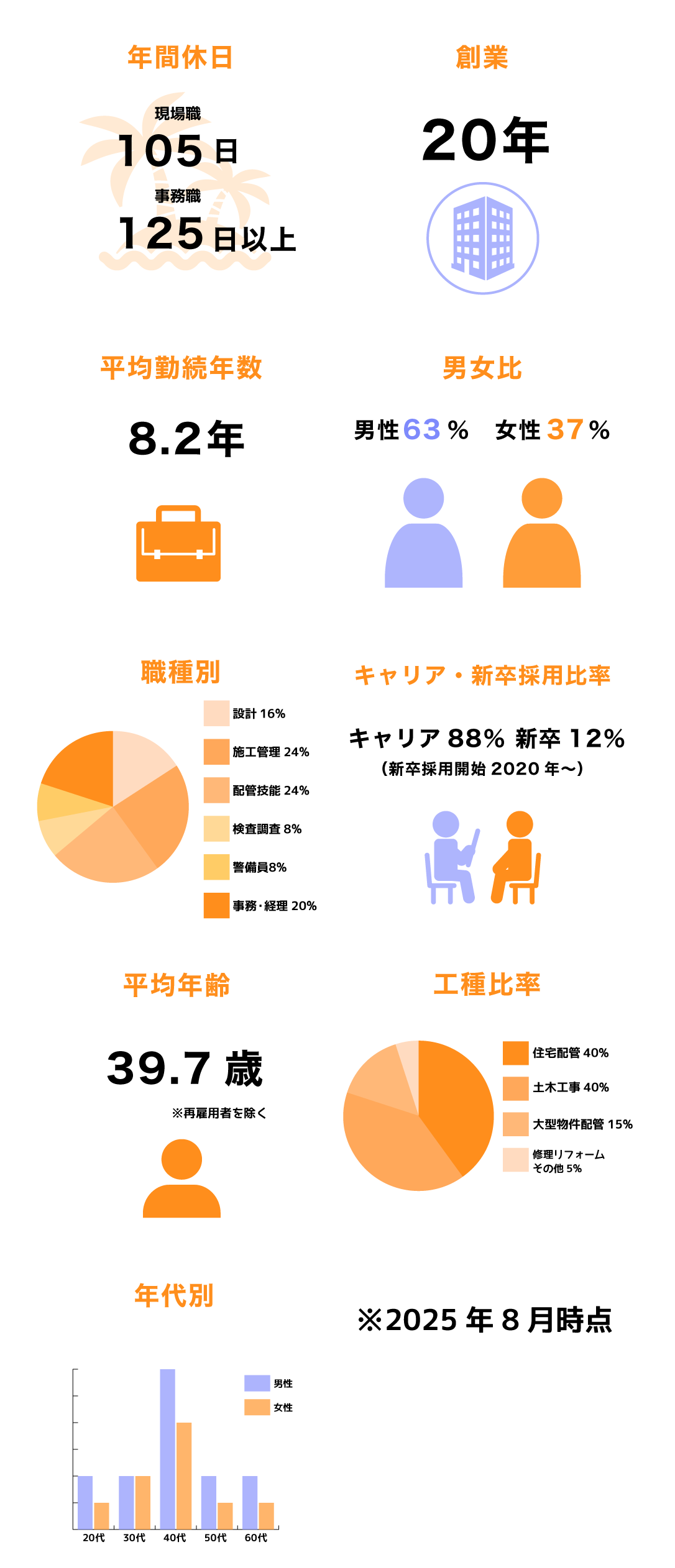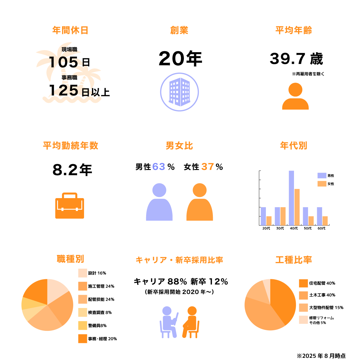 A.配属部署にもよりますが、配管職や事務方は10~20時間程度です。